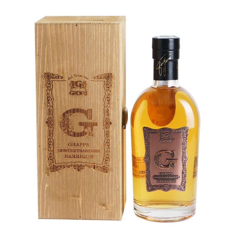 Grappa barricata ottenuta dalle uve del vitigno Gewürtztraminer coltivato con passione nel Trentino Alto Adige, la sua terra di origine. Dal colore ambrato, al naso è delicato con sentori di fiori e agrumi, al palato risulta soffice e piena di gusto con un finale aromatico. Da provare dopo cena in momenti di meditazione. Etichetta in rame.